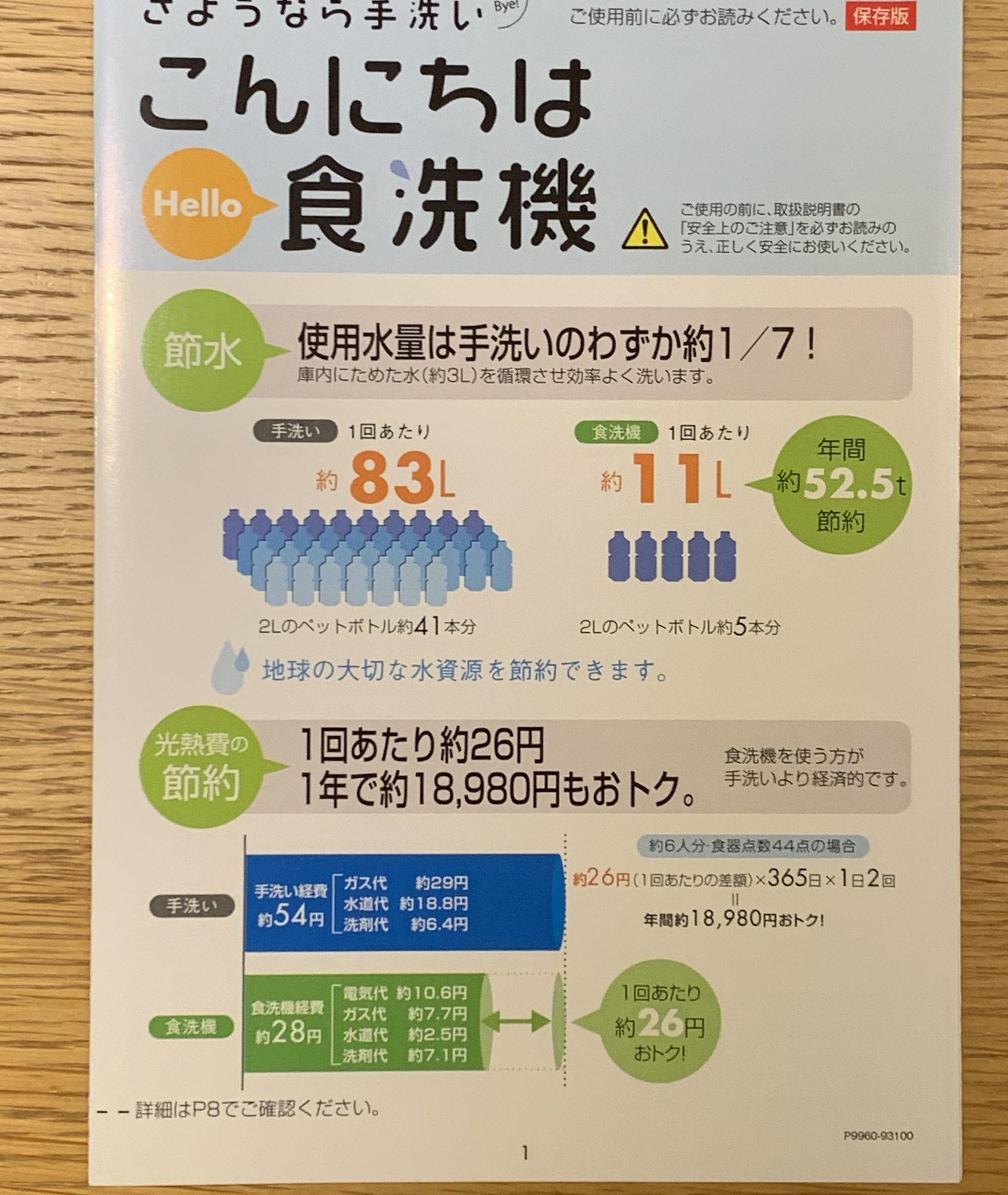 我が家が使っている食器洗い洗浄機パンフレットによると、